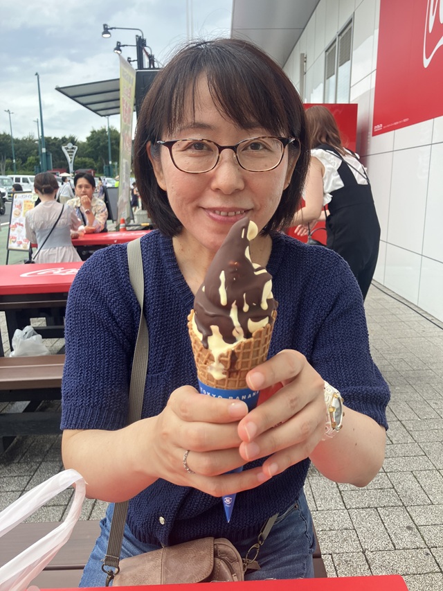 ここでは僕がカレーと限定キャンディを買い、彼女がプレミアムバニラソフトクリームをシェアして食べようと提案。これがバターのようなチーズのような濃厚な味で美味しかったです。