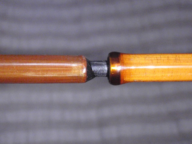 原因は、トンキンケーンのブランクに対して、グラスファイバーのムク棒が弱いというか曲がり過ぎること。竿が継ぎ目からいびつに曲がるのも、印籠芯(フェルール・プラグ)の硬さが足りないからに他なりません。