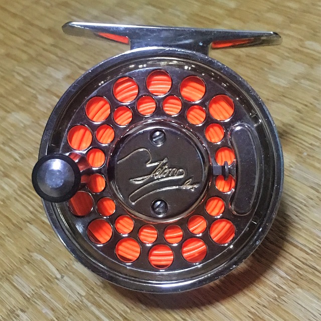 そんな折の2016年5月28日、Old River KAWAGOEのメンバーでウナギ祭りを行った際の持ち寄りビンゴゲームでフライリールが当たりました。ウメさん出品のTETONのモデル3。ノーマルアーバーの可愛いリールです。カヤックやフロートチューブではリールがぶつかって邪魔に感じることもあるため、これはもしやピッタリなのでは?と閃きました。