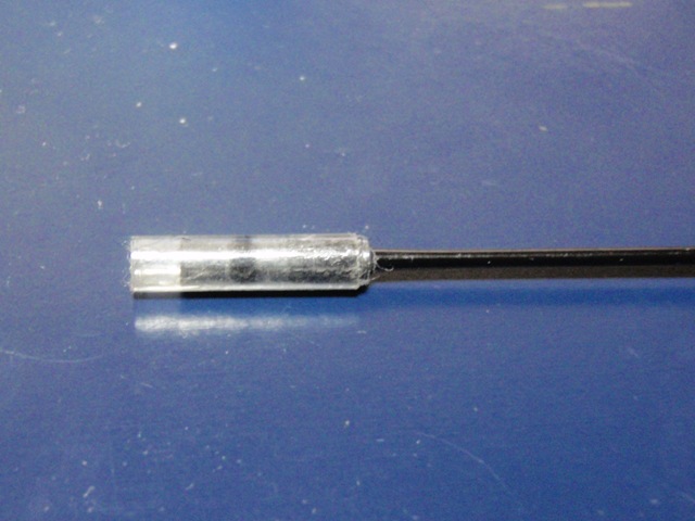 次にゴム管をウキの足に通してセロテープを巻き、かさ上げします。