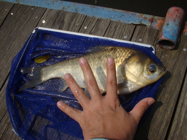 柔らかいへら竿でこのサイズを掛けるとめっちゃ楽しいですね。これよりデカいと0.4号のハリスでは獲れないかも知れません。野べらのデカいの狙いで夢中になっている人も少なくないと聞きますが、さもありなん。