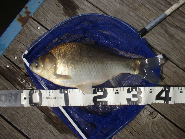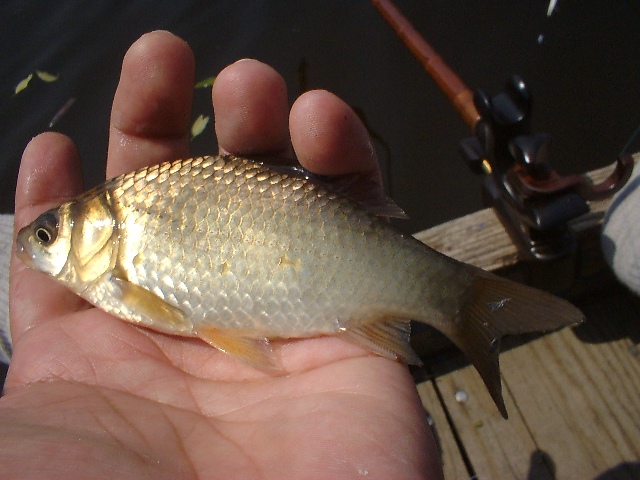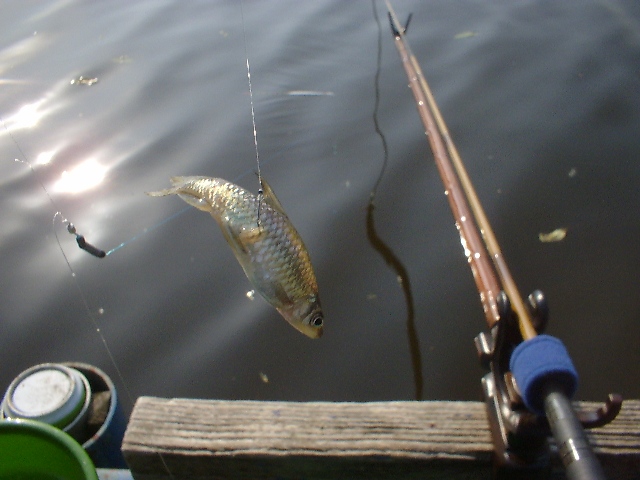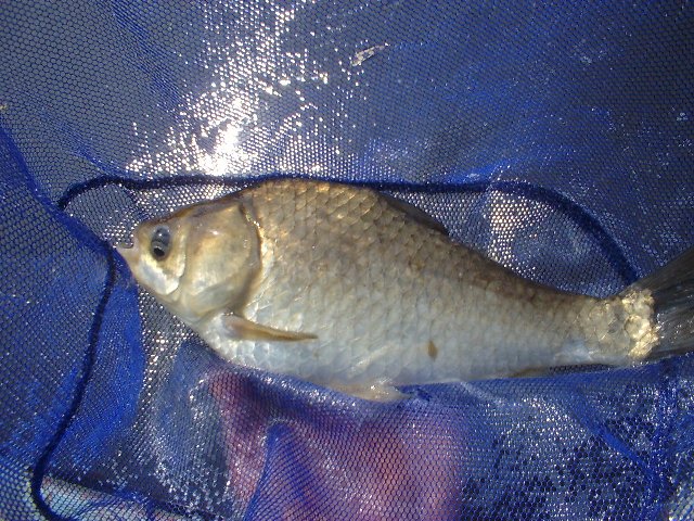 終了間際、ぴゅっと沈むウキにエイヤッ!とあわせるとクチボソが引っ掛かってきました。