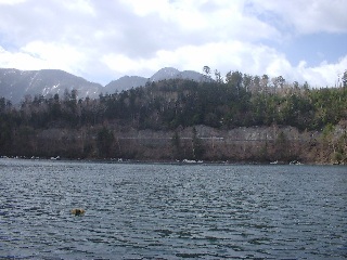 さてはてどこを攻めるかな?と出船すると、北向きの斜面の木陰にはまだ雪が溶けずに残っています。うへ~!ここはまだ春なのね~。気温も低くまだまだ寒いようです。事前に聞いてはいましたが、とてもハッチのある気候ではありません。