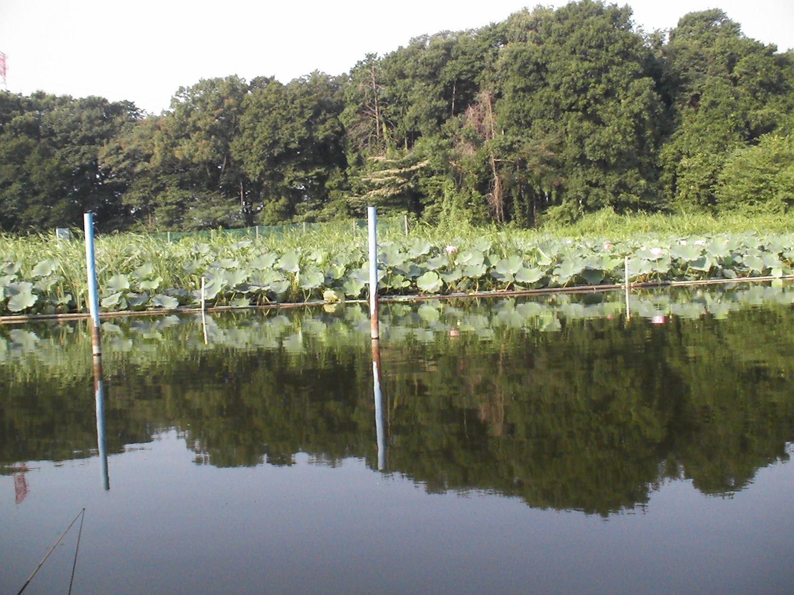 朝6時に駐車場で待ち合わせ、料金を払った後お客さんの入り具合を見てみます。さくらから松の各桟橋には人がたくさん入っているようです。今日は事務所前の桟橋の一番、あやめ桟橋に釣り座を構えました。こちらはあまり人が入っていません。桟橋の中程池の奥に向かって座ると正面に蓮が生えています。景観は抜群ですね。