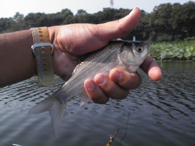 えさを柔らかめにして溶け易いようにするとウキが戻ってくる場合がある、ということに気付いて試しているうちにズン!とアタりましたが、これはギュンギュン引っ張るコイでした。50cmはあるという立派なサイズでこんなの釣ったコトないという魚でしたが、本命ではないので写真も撮らずにリリースしました。