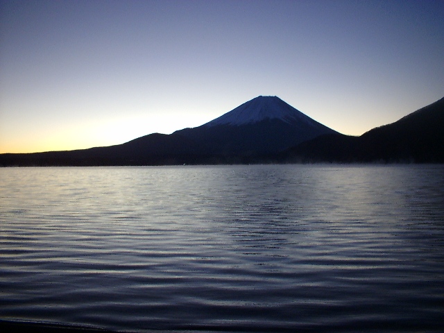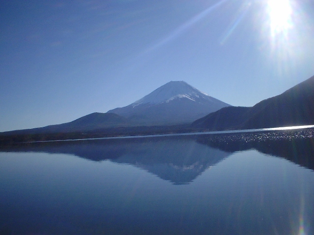 陽が上がってくると眼前の湖面には鮮やかな逆さ富士が広がっています。清冽な空気と相俟って、気分は爽快。新年だけあってなんだか引き締まった心持になりますね。