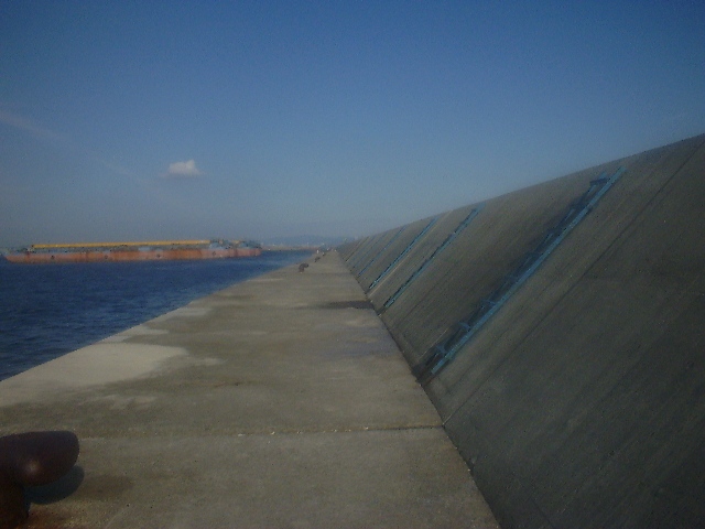 鉄は熱いうちに打てって言うし~、やっぱもうちょっと大きいの釣りたいし~、と自分に言い訳しながら、今度は通称ムコイチこと武庫川尻一文字防波堤です。