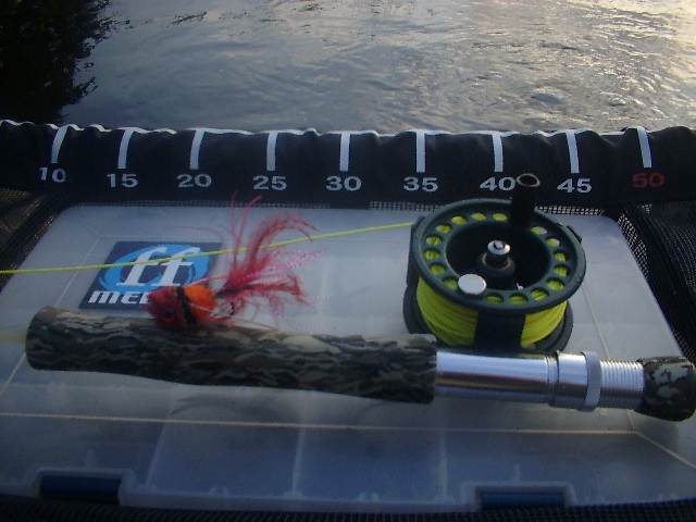 ガマカツB10Sの#2フックで巻いたバスバグにはさっぱりバイトがないので、#4サイズのフライに替えても芳しくありません。唯一と言ってよさそうな沖まで倒木のあるポイントへやってきたところで、TMC8089の#6サイズのバスバグに変えます。