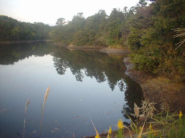 2日(日)の夜中に自宅を出発し、常磐道を北上します。途中のコンビニで仮眠後、6時30分頃、目的の溜池に着きました。水際から眺めてみると、水位が随分下がっています。