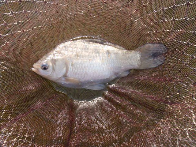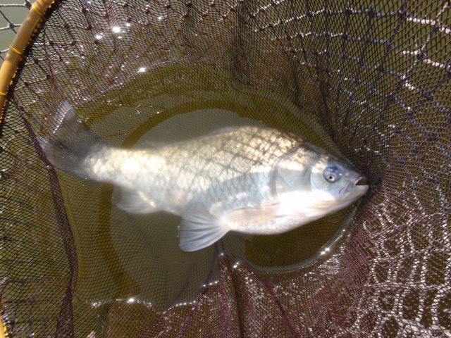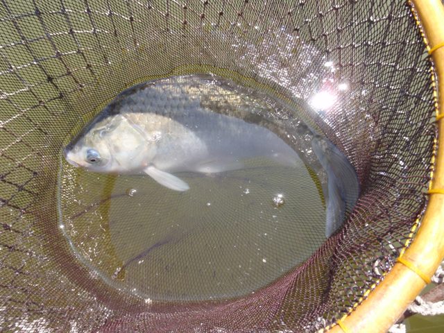 ここで下ハリスを35cmに戻すと、人が減った効果と相俟ってサワリが出てきました。バラケのタッチもシットリめに修正するとようやく釣れました。