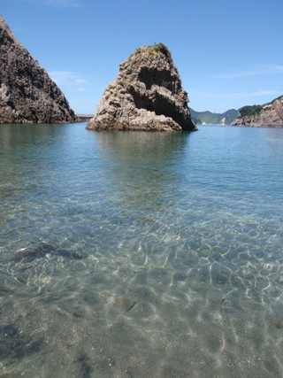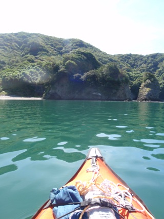 ここは奥まった湾になっていて、風を避け波の心配がいらないカヤック向きの地形になっています。僕の住むさいたまからは非常に遠いため、最近はすっかりご無沙汰だったのですが、10年程昔に店長さんと手漕ぎボートでアオリイカを狙いに釣りにきたことがあって、その際には大きなキスやカワハギが釣れたことを覚えています。