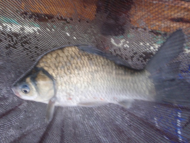 釣り開始は6時50分頃でした。えさを打つとウキのトップになじみが出ないので、少しづつ練って様子をみると5投めくらいでなじみが出るようになりました。これで良いかな…と思った途端、アタリが出て第1号が釣れました。