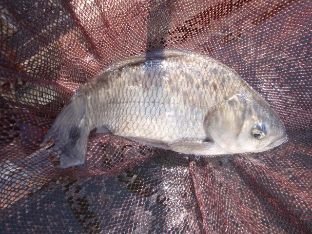 午後になるとウキの動きが悪くなってきました。バラケに手水を打ったり、食わせのウドンの大きさを替えてみたりしながら、ようやく午後の部1枚めが釣れました。
