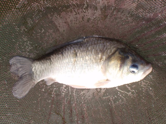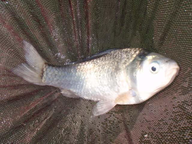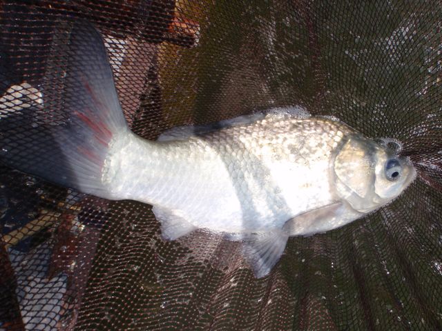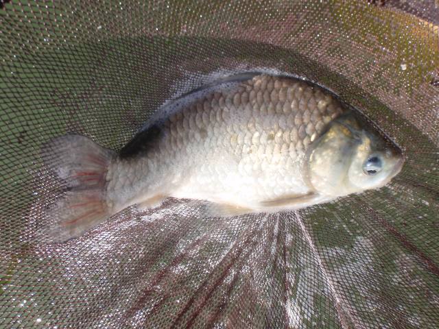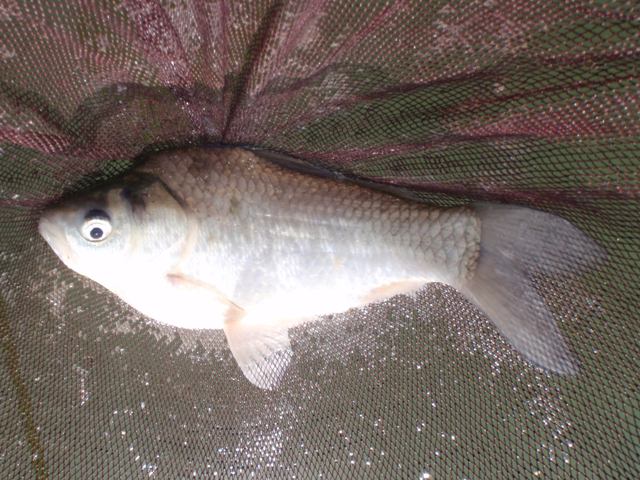 結構遠巻きになっているのかな?とバラケが落ちてから、置き直しを多用してアタリを待っていると、ムズッと入る待望のアタリ。ハッシとあわせると、ようやく入魂の一枚が釣れました。