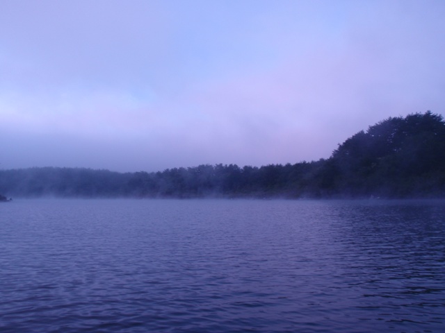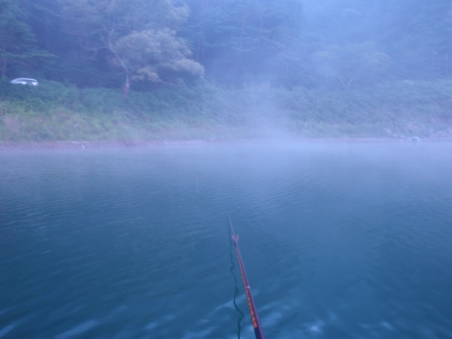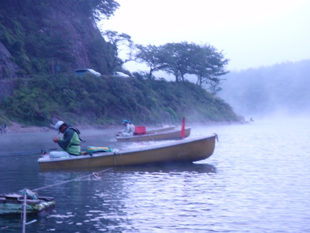 5時過ぎに精進湖畔のニューあかいけに到着し、入漁料、ボート代を支払って、お昼のお弁当の配達をお願いします。その際に、ご主人に最近の釣りの状況を聞くと今日例会で入っているのは14人。浮島ロープなど手前の方は小さいけど数が釣れる。コタツや葉山下新ロープなどの奥の方は、数は出ないけど型はいいとのことでした。