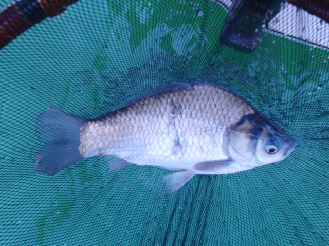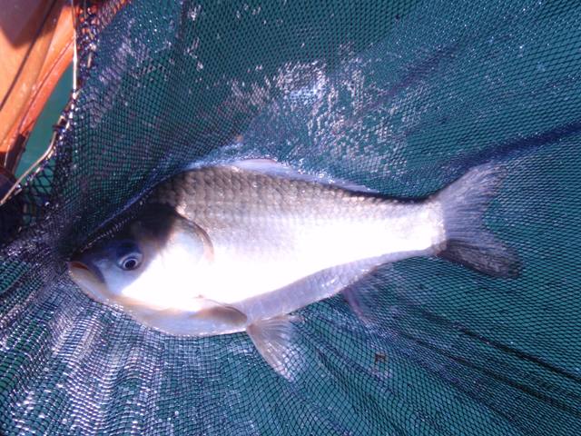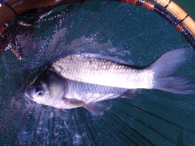 ようやく初物が釣れました。えさを小さく付けるとへらぶなの反応が良いようです。大きく付けてしまうと、途端にウキの動きが鈍くなりました。