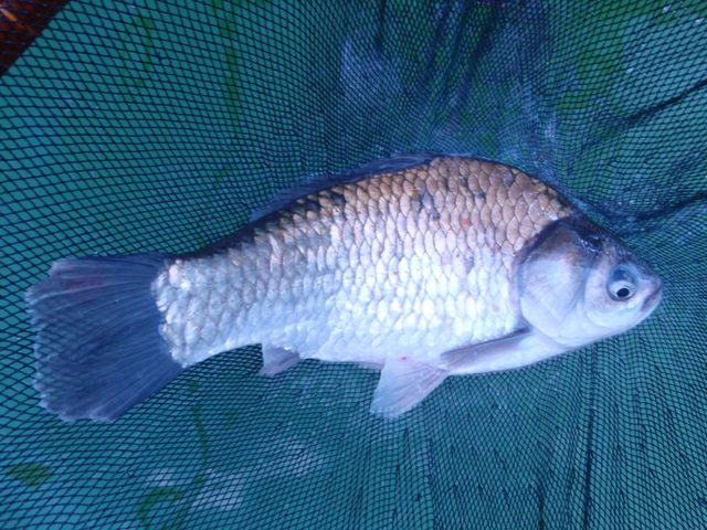 トロロの効果があったか比較的強いハッキリしたアタリが出ました。でもバラケが落ちた直後ではなく、少し残っているようなタイミングで(笑)。