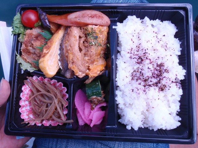 お弁当を受け取って、少し早いお昼ご飯です。外で食べる食事は格別ですね。もうちょっと工夫が報われる釣況だと、美味しさが倍増なんですけど(T_T)。