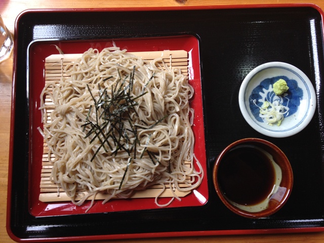 朝ゆっくり起きて、9時半頃に出発し、2時間ほど掛かってお昼前に釣り場に到着しました。早速、事務所に行くと、半日券は12時以降から、ということで、先にお昼ご飯にします。併設の食堂で、手打ちのざるそばを頂きます。