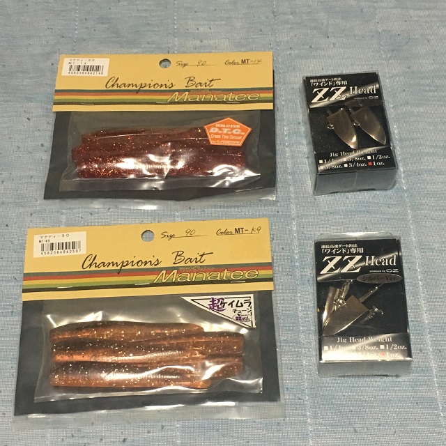 通常はラバージグやマダイテンヤを使うようですが、当日はワインドの講習会が行われるということで、マゴチ用ラバージグの他にワインドの道具を購入して、釣行に備えたのでした。