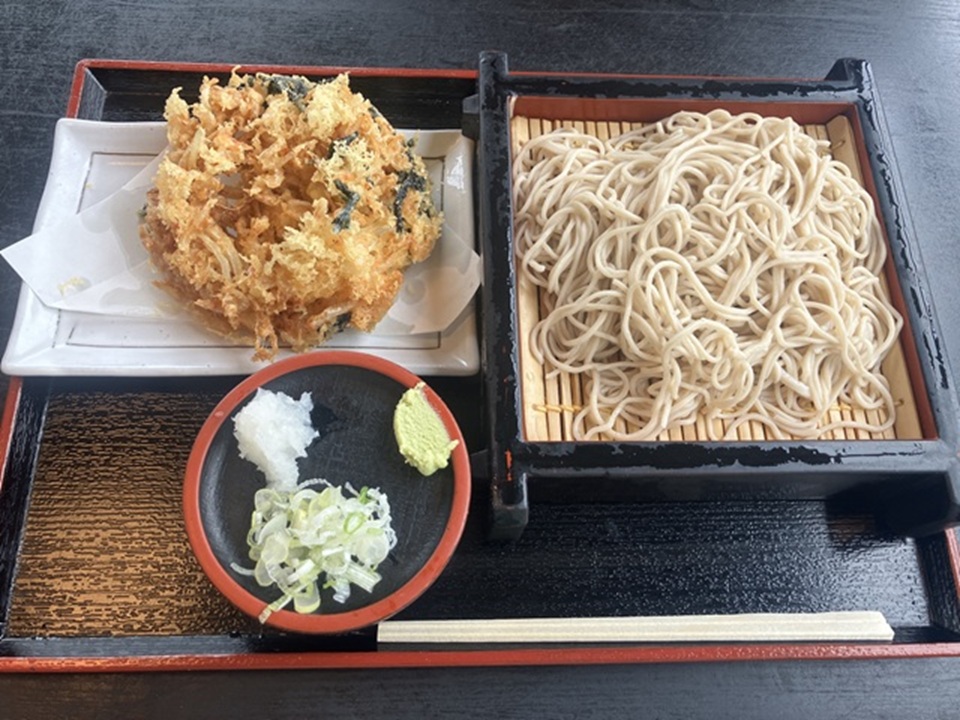併設の網元おおばは15時に閉店していたので、となりのおか本へ行き、サクラエビのかき揚げ天ともりそばのセットを頂きました。
