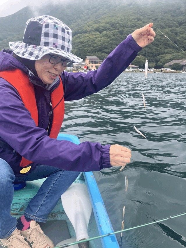 下を向いてエサをハリに掛けることが無い空バリの釣りは、彼女もとてもいいよね~とお気に入りの釣り方です。また行きたいと言ってくれる程なのですが、さいたまから芦ノ湖へは渋滞の酷い地域を通るか避けるかしないといけない点が頭の痛いところです。