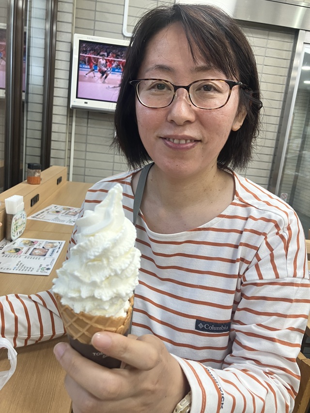 ここでは僕がカレーと限定キャンディを買い、彼女がプレミアムバニラソフトクリームをシェアして食べようと提案。これがバターのようなチーズのような濃厚な味で美味しかったです。