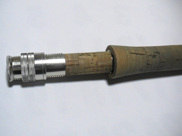 ここいらあたりの仕上げは3番ロッドにしては珍しいチョイスじゃないでしょうか。アップロックだとフードを埋め込む必要があるんでハーフウェルになるのは分かりますが、わざわざコルクのリールシートを使って軽くしておいて、金具が重くなるアップロックを選択するあたりはちょっと不明です。一般的にはリング&リングもしくはリング&ポケットを選ぶのが相場でしょうか。